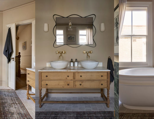 A masterclass in craftsmanship and design, this calming bathroom blends refined natural textures, bespoke touches, and a soothing neutral palette…